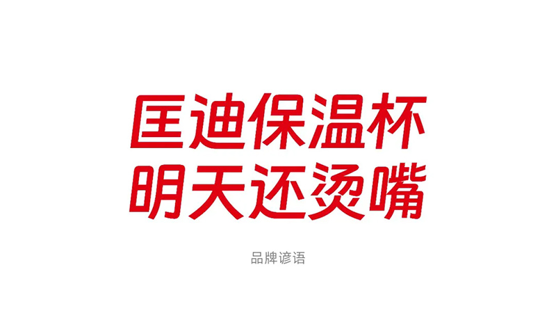 在超級符號創造過程中,有多個創意方向,直到我們確定了匡迪的品牌諺語“匡迪保溫杯,明天還燙嘴”,符號方向才確定下來。當品牌諺語確定之后,我們項目組都很興奮,因為這樣一來,話語創意和符號創意可以一體化詮釋“保溫”的理念,釋放更大的信號能量!