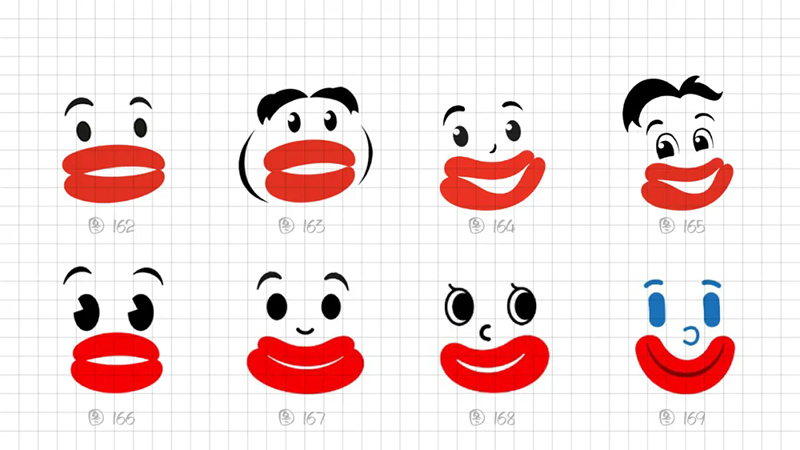 一開始使用最常規的多符號相加的符號創作套路,即“香腸嘴+熊貓”“香腸嘴+水滴”“香腸嘴+猴子”“香腸嘴+字母D”。